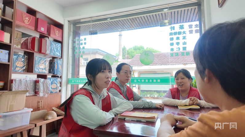谢莹(左一)和其他志愿者走访商户(央广网记者 赵家慧 摄)