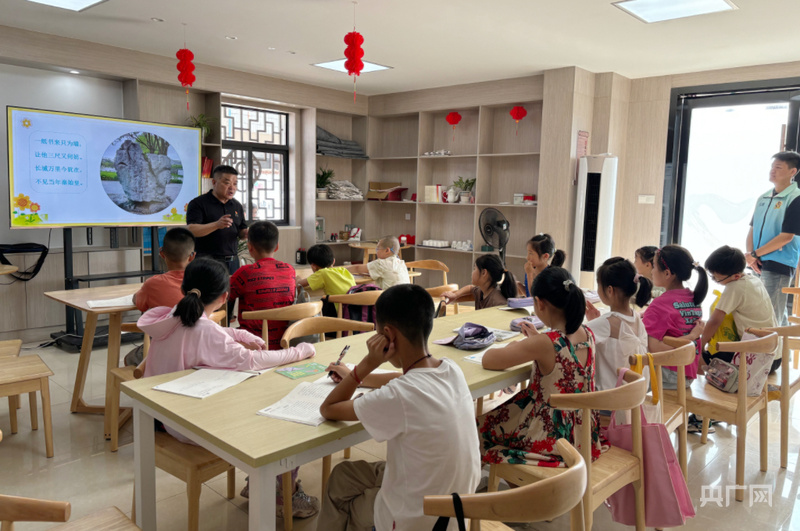 张耘在社区活动室给孩子们讲六尺巷的典故(央广网发 叶爽 摄)