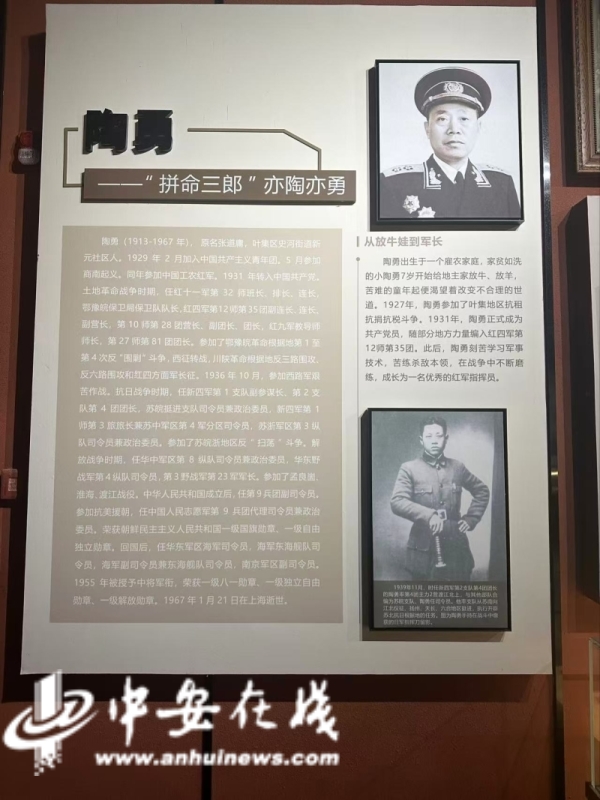 据文化中心讲解员李雨晨介绍,陶勇将军原名张道庸,因为他作战英勇,无论什么事情他都冲在最前面,所以人们称他为“拼命三郎”。