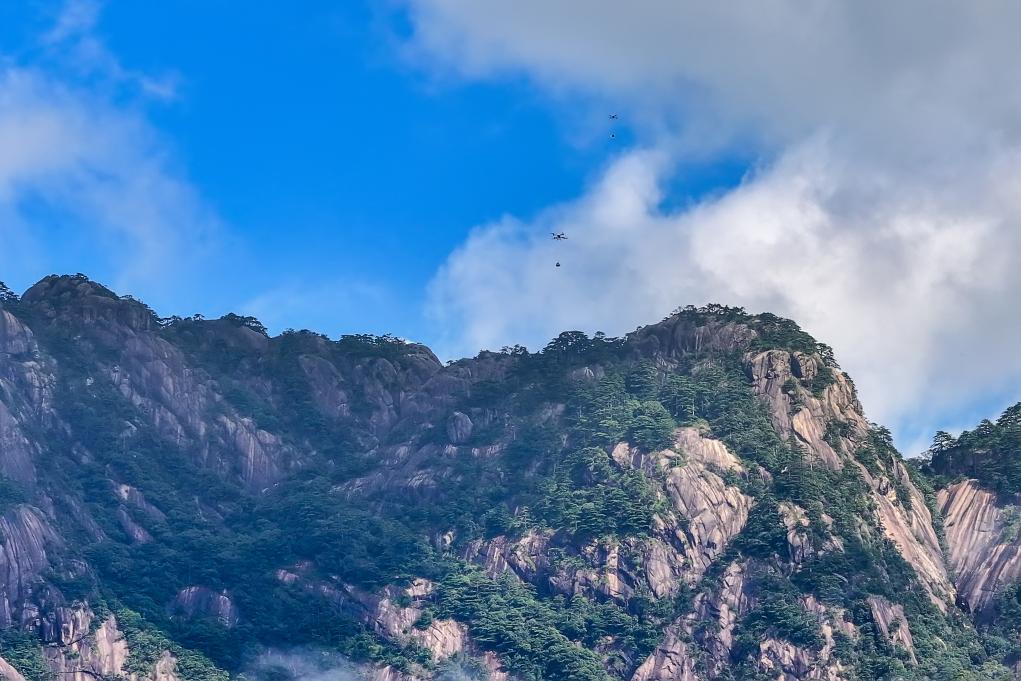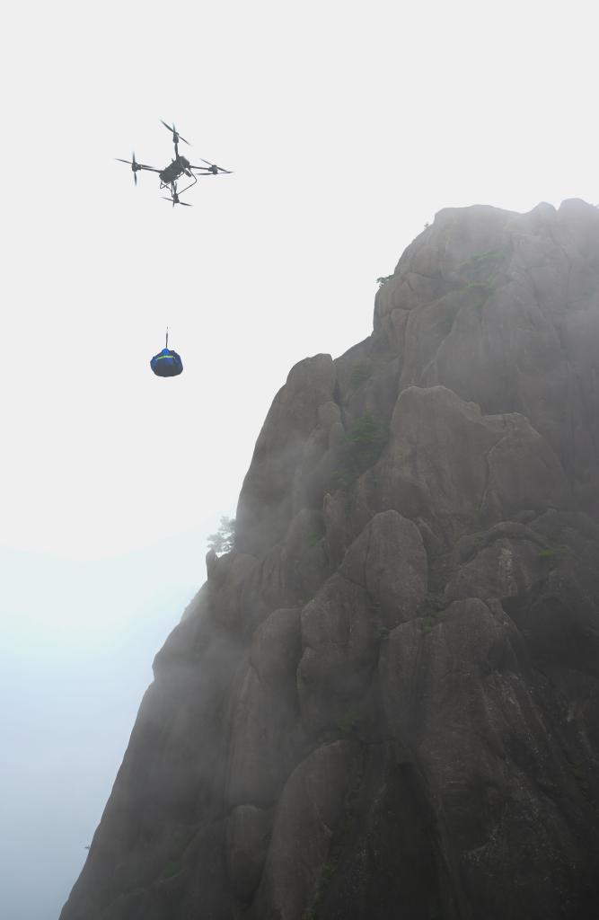8月22日,在安徽黄山风景区,无人机在运输物资。新华社记者 周牧 摄